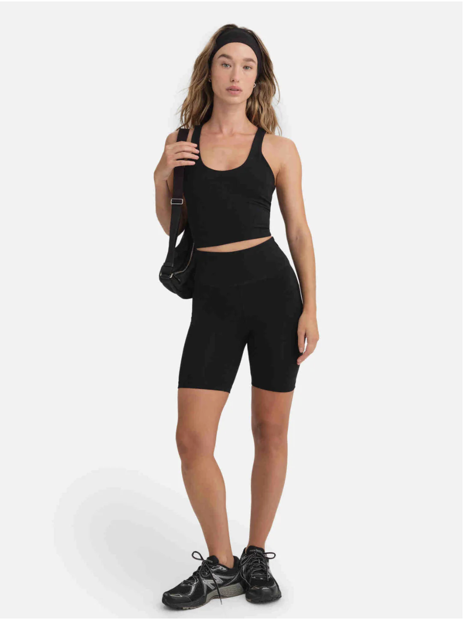 The 6.75-inch inseam is long enough to prevent riding up while still offering a flattering, modern silhouette. The waistband sits comfortably at the waist, providing light support without digging in or feeling restrictive.