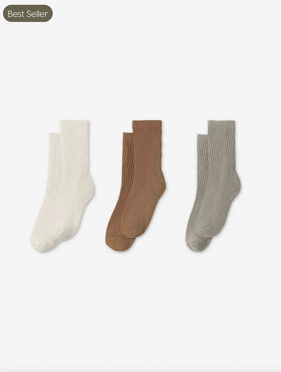 The Organic Cotton Sock 3-Pack brings together breathable comfort, effortless style and natural materials in a simple everyday essential. Whether you’re lounging, walking or layering, these socks offer softness, ease and durability, making them the perfect addition to your non-toxic activewear wardrobe.